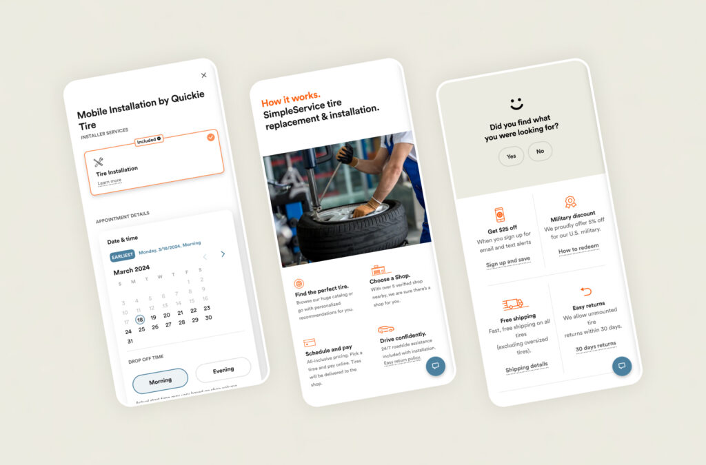 Update Installation Date and Time: Users can easily modify tire installation details, accommodate schedule changes or select a different appointment slot. Clear prompts and intuitive controls ensure a seamless experience. Useful Info for Shoppers: Equipping users with valuable insights, from tire maintenance tips to FAQs and buying guides, enhances their overall shopping experience. Benefits and Shopping Adviser: Personalized recommendations and expert advice, tailored to specific needs and preferences, guide users toward optimal tire selections.