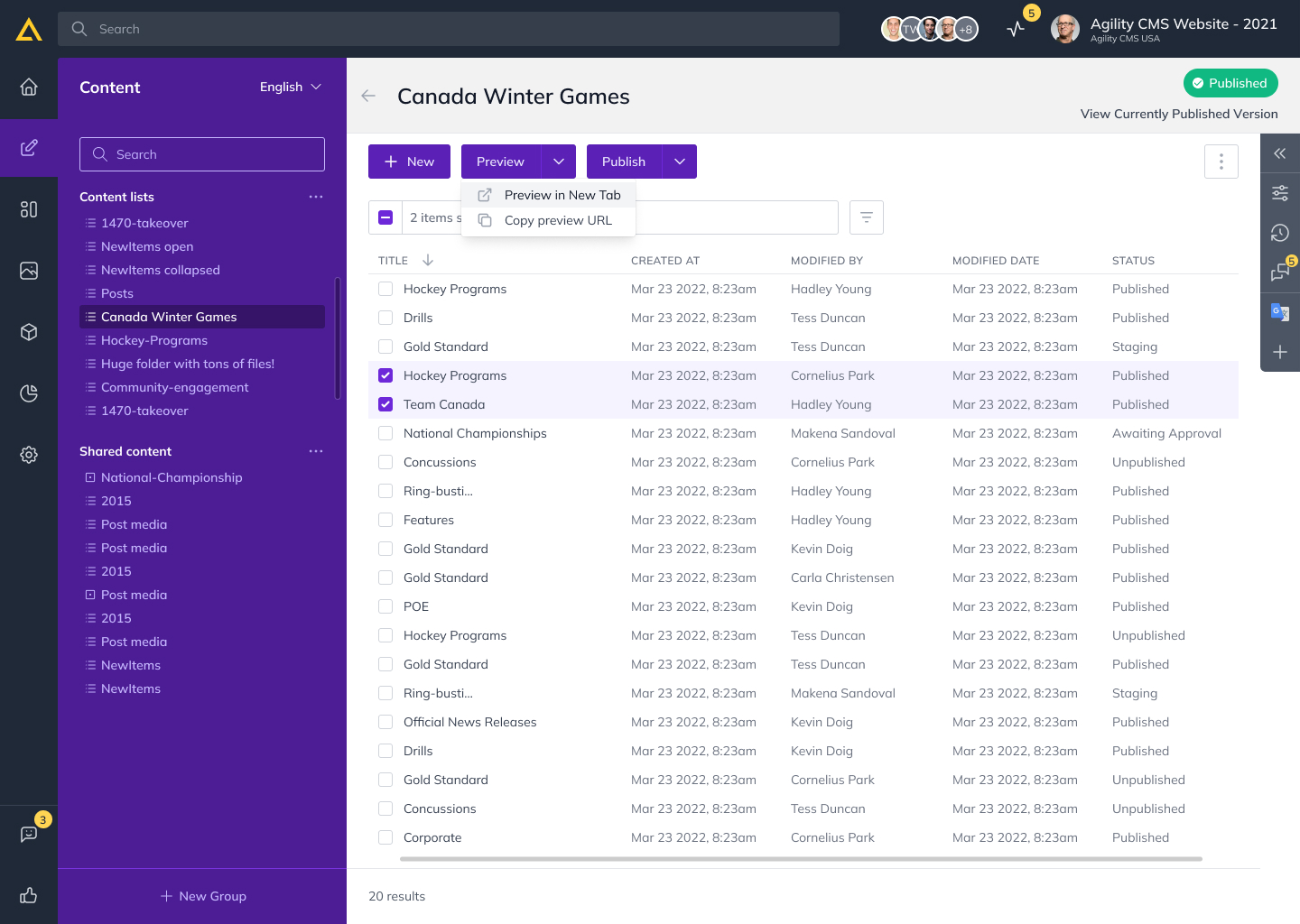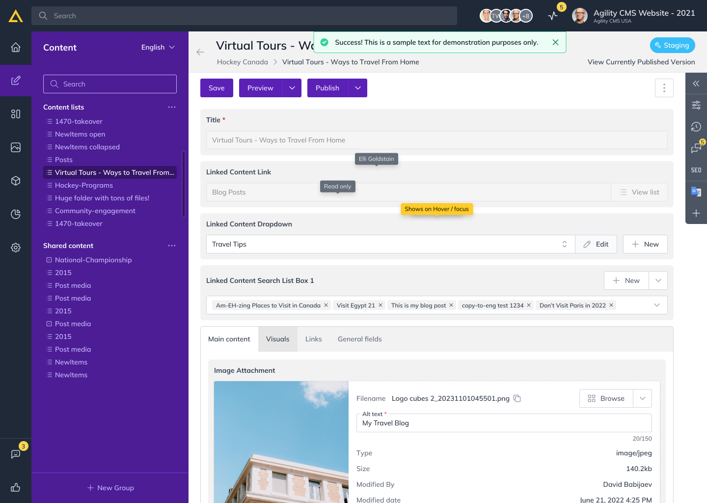 The Settings section was completely overhauled and it enhanced user control and helped with site management in a much cleaner way. Enhancements to functionality for managing Global Configuration, Sitemaps, Locales, User Access, Team Access, and Roles improved upon the basic layout, making the CMS more intuitive to use without changing any functionality. The new design makes these configurations more accessible, which makes the workflow in the platform appear smoother and helps create that collaboration through the platform, so users can manage permissions and adjust site settings on the fly.