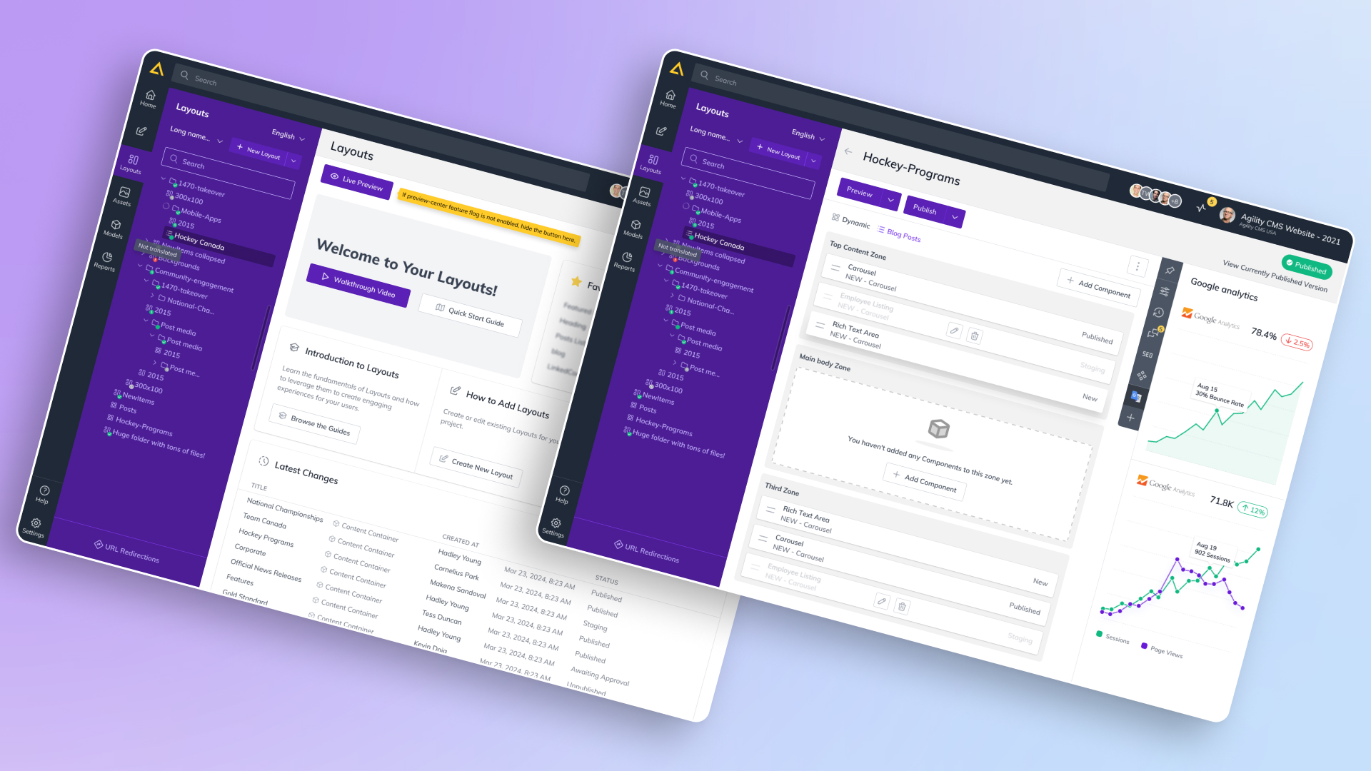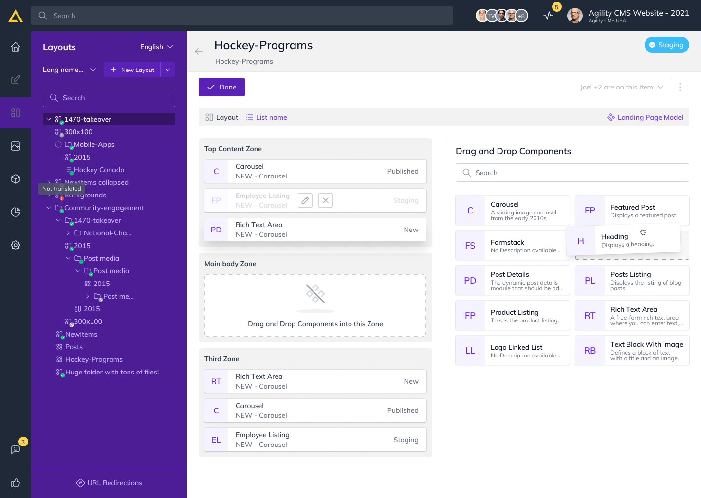 The most radical change was to turn what was referred to as the ‘Pages’ section into the ‘Layouts,’ because it meant that the CMS structure reflects how the user thinks about content. The rename was much more than just a rename, instead it required thinking about the design and interaction model to better fit the structure of site content. By incorporating drag-and drop capabilities, users could now more intuitively situate and view their content hierarchy. Thus, the easy way of structuring or modifying and moving layouts made it possible for users to experience using the CMS in ways that are more in line with how the architecture largely operates.