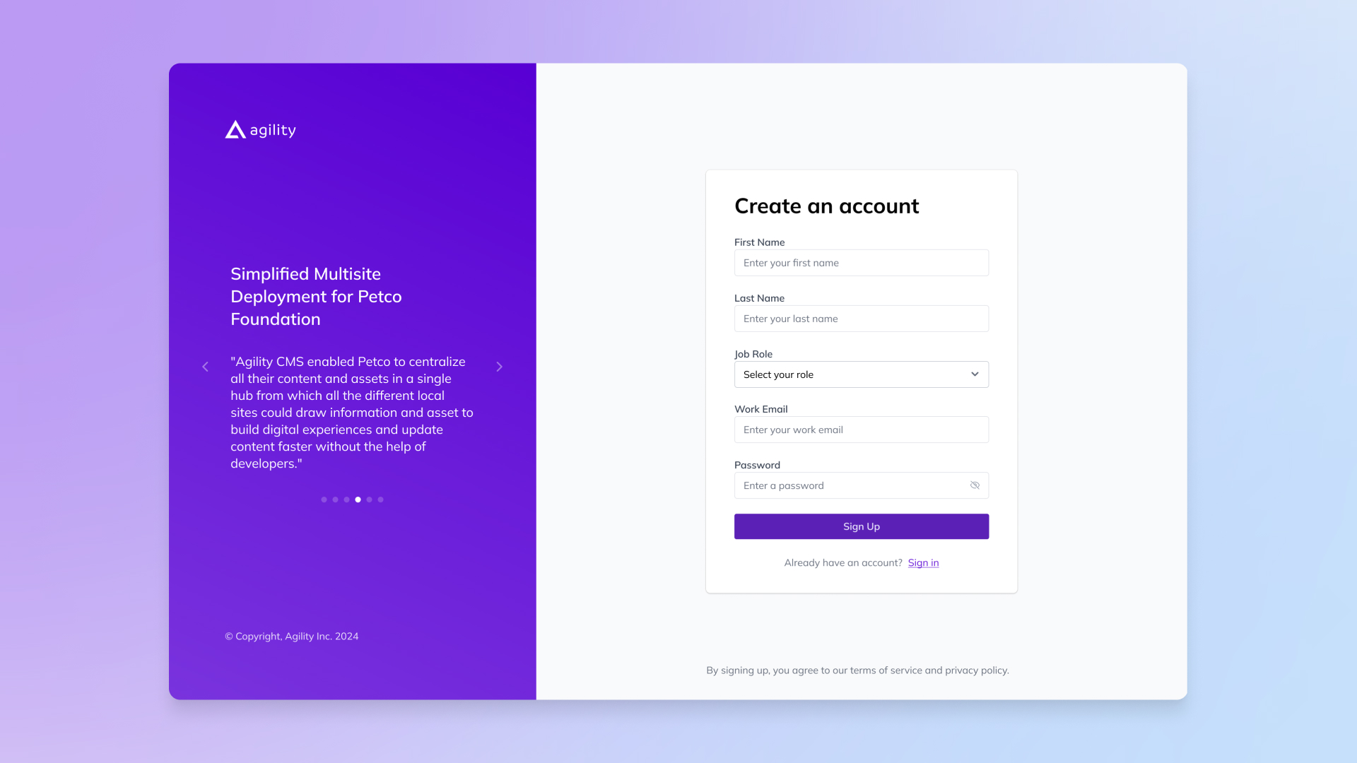 The simplicity and security seemed to be prime concepts for the first set of redesigns. The signup and login screens were split-screen, having security elements such as encryption, and a content carousel. These screens included fields for job role personalization, password recovery options, single sign on and visual security cues to improve the start experience for this set of users. In the content management view, we improved on color palette, streamlined navigation and gave a clean global search function to enhance the ease of use as well as the functionality.