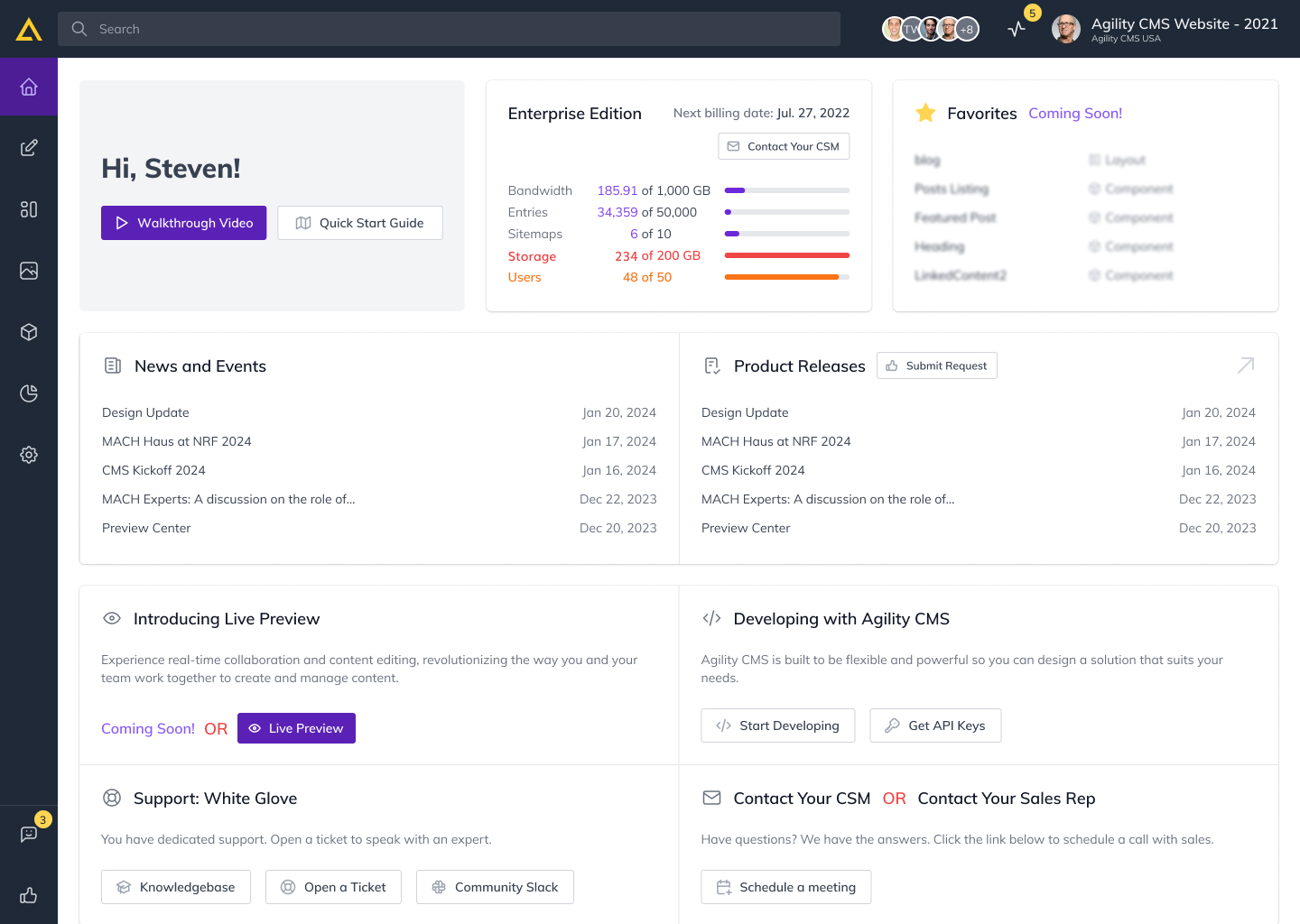 Targeting Home Dashboard for Headless CMS, the goal was to make the starting experience more engaging and faster for users. The project wasn’t focused on just a visual update, it was about simplifying navigation and to make some of the most important content more accessible to the user type. I considered what people needed, what they would and wouldn’t want to do, and designed a simple, clear layout so people could do the things they needed to do in the time they had. By redesigning this, we improved usability and made it so users could log in and start each session with clarity and with a more smoothly flowing workflow.