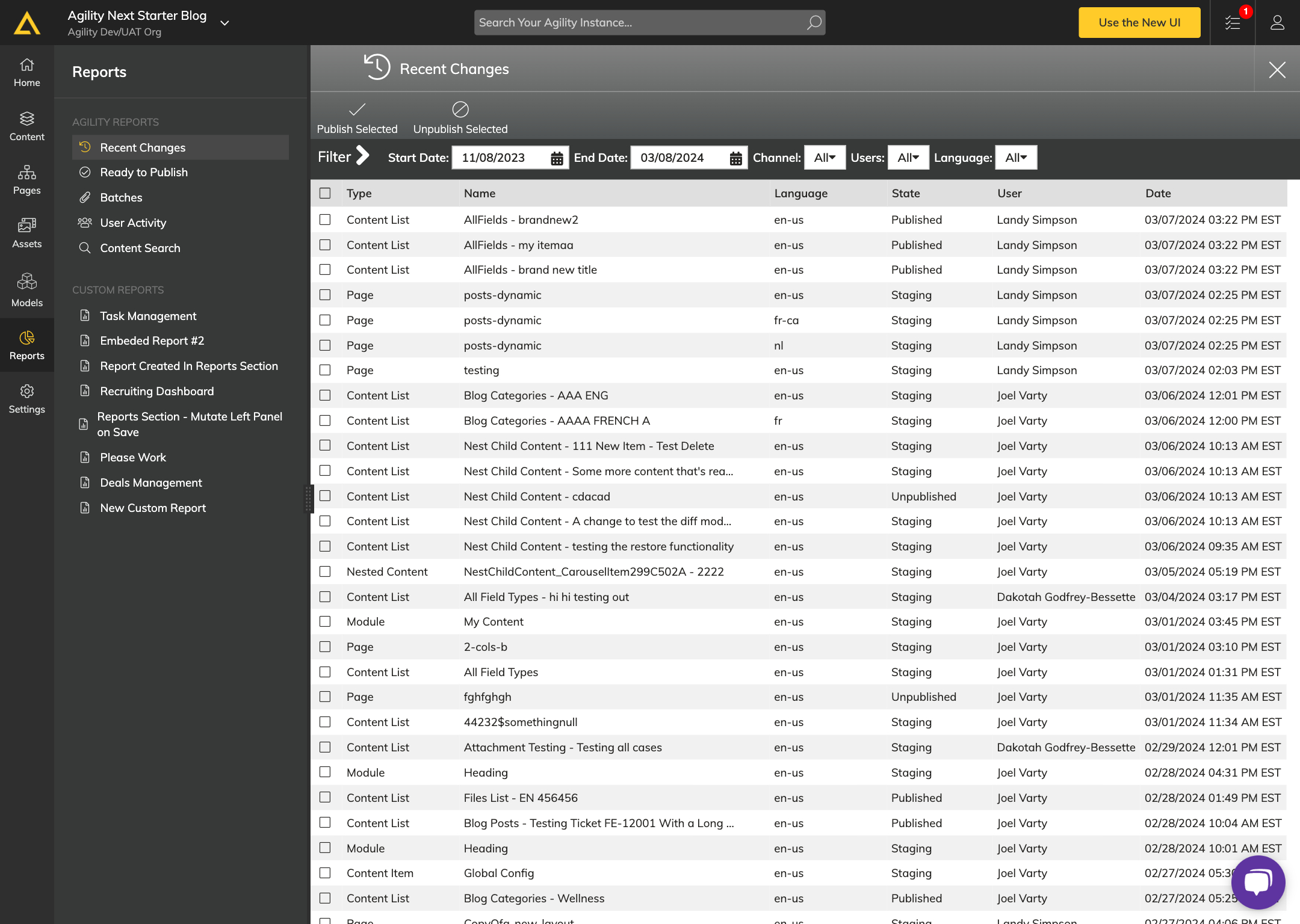 Users enjoyed the redesigned Reports section which let them gain an even better overview of their content and activity across all of their areas: “Recent Changes,” “Ready to Publish,” “Batches,” “User Activity,” and “Content Search.” The focus was on making data more accessible and organised, in order to provide users with better opportunities to develop deeper insights about their content workflows. Now this section provides a clearer, more efficient method of managing track of progress and content in support of a more active approach to content management.