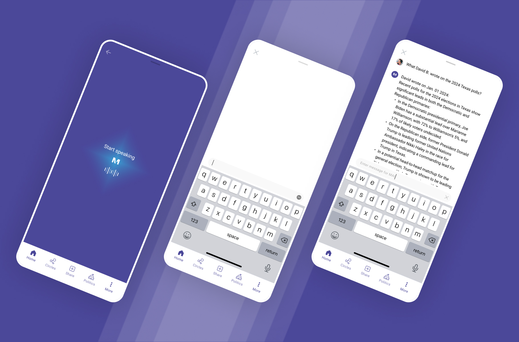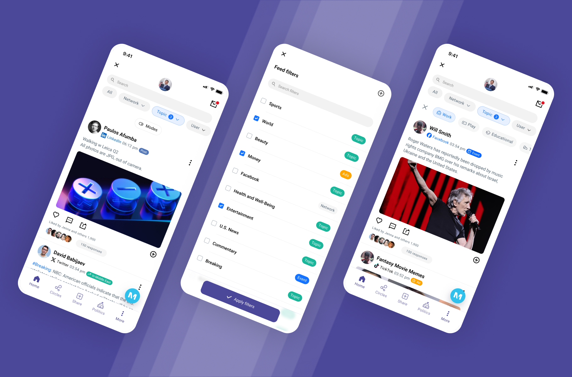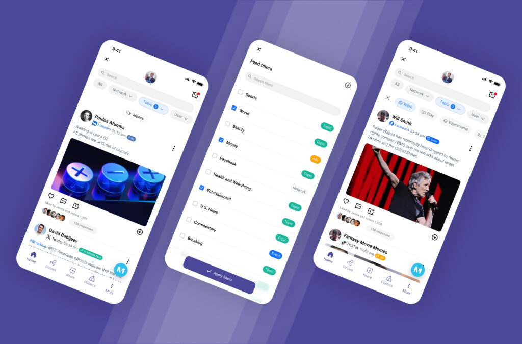 My core objectives centered on crafting a customizable feed with tailored filters to maintain user focus and engagement. Additionally, I spearheaded the design of MAI Politics, ensuring that only politically relevant content aligned with users’ preferences surfaced. Moreover, I led the creation of Circles, facilitating connections among users with shared interests.