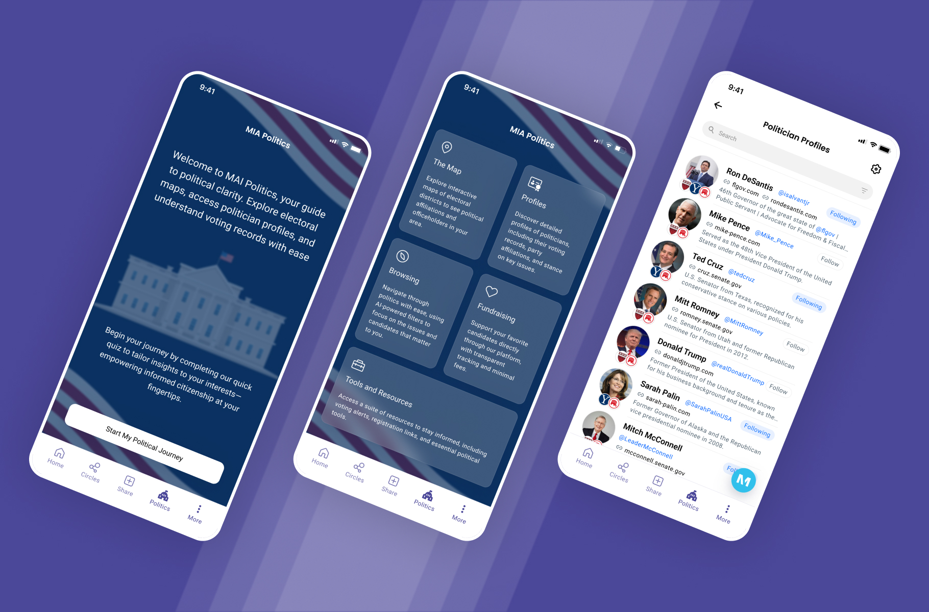In shaping MAI Politics, I developed a dynamic political quiz to spark user engagement and capture diverse viewpoints. From the interactive map to officials’ profiles and AI-powered browsing, every feature was thoughtfully designed to deliver personalized government insights. Additionally, I introduced innovative fundraising tools and resources, empowering users to make a tangible impact on political causes. Crafting the UI, UX, and flows, I carefully prototyped each feature, aligning with client specifications and user input.